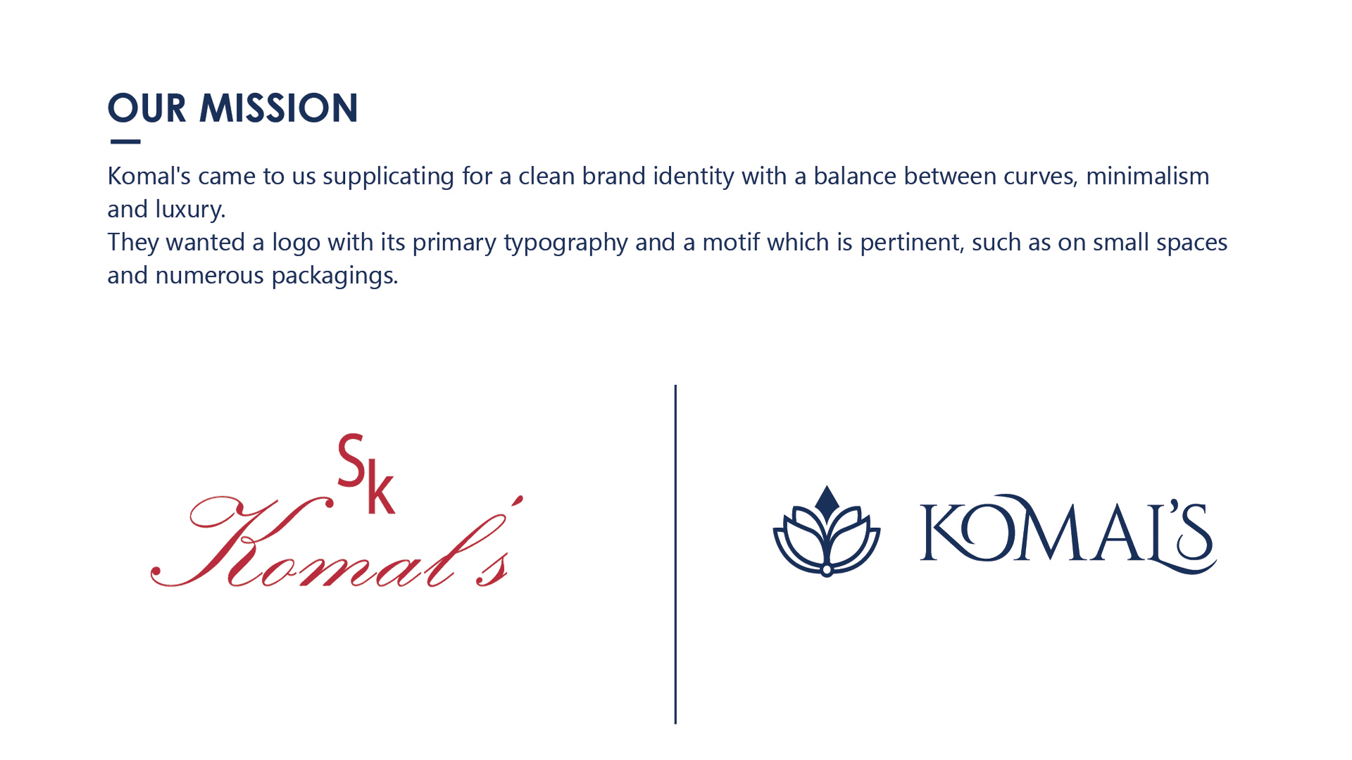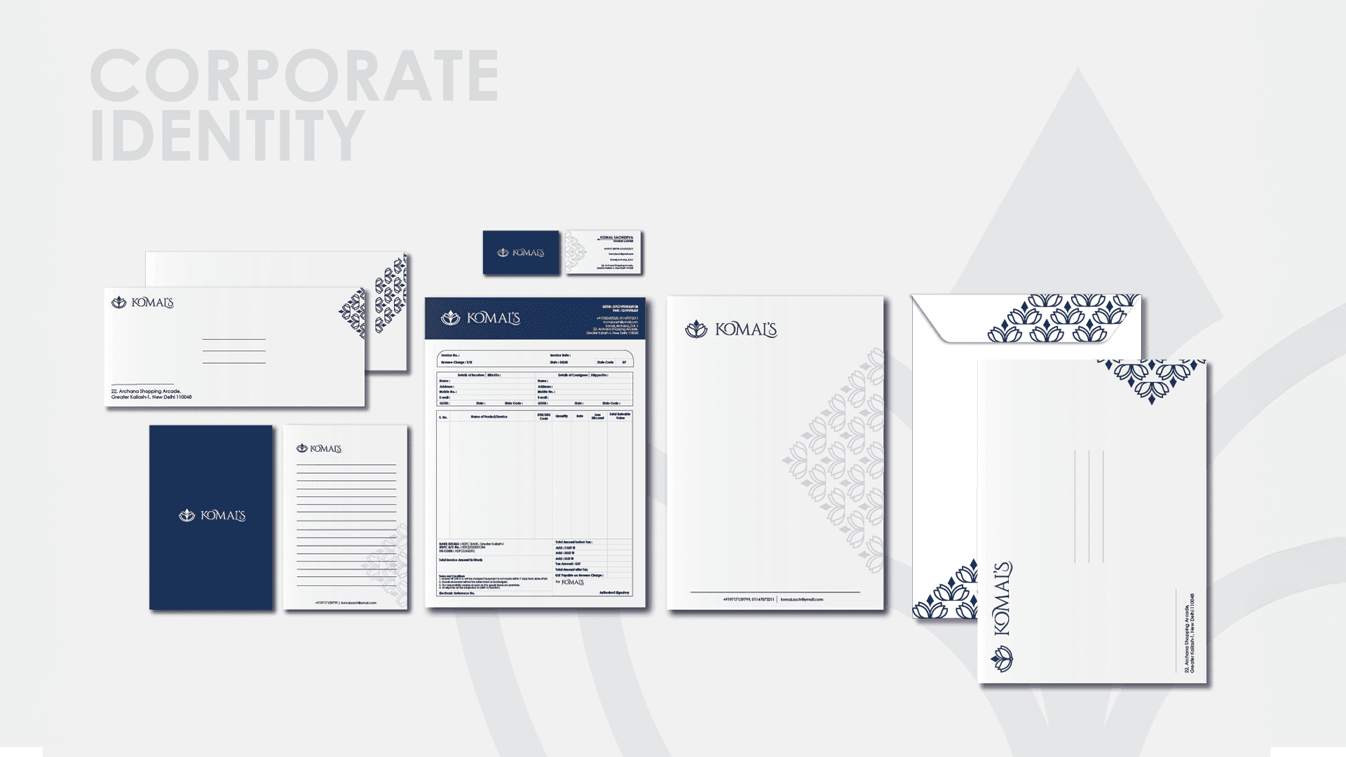 The Komal’s Branding project is a comprehensive rebranding of a luxurious Indian ethnic clothing label, executed as a collaborative team effort. The visual identity, packaging, and merchandise were crafted to reflect the brand’s elegance, richness, and cultural charm.